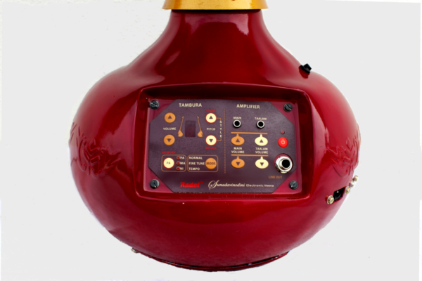 – Enhanced volume, with the amplifier, speaker and electronic tambura built-in to one of the gourds